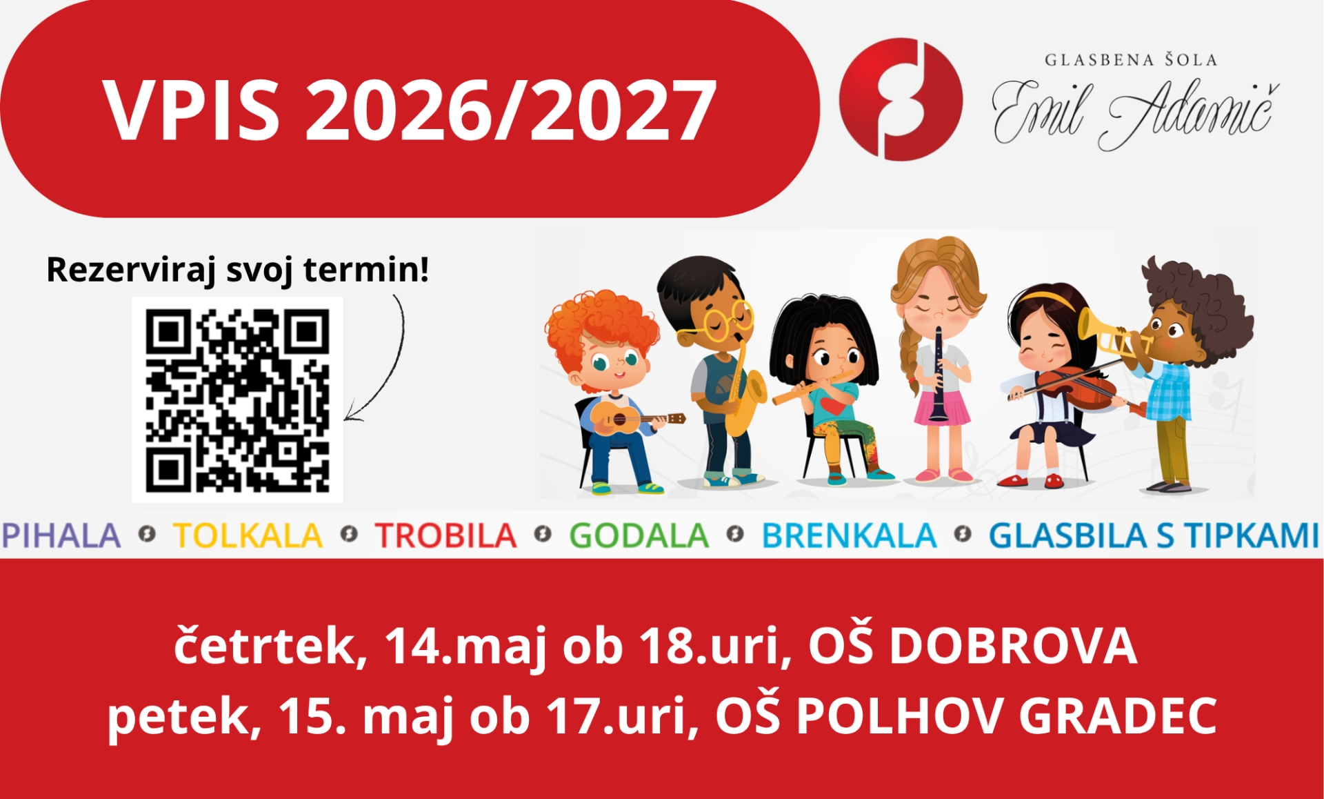 V prihodnjem šolskem letu razpisujemo predvsem inštrumente: